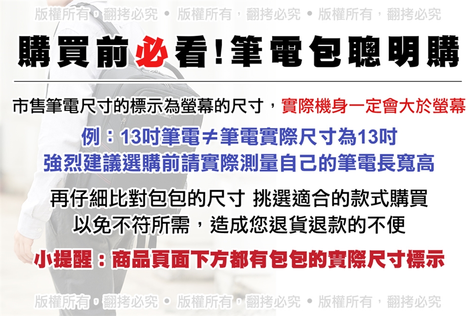 *若您的物品的尺寸[只]小於包包尺寸[三公分]以內,可能會造成包包拉鍊開闔不便等問題,請謹慎購買