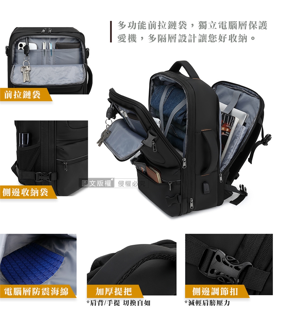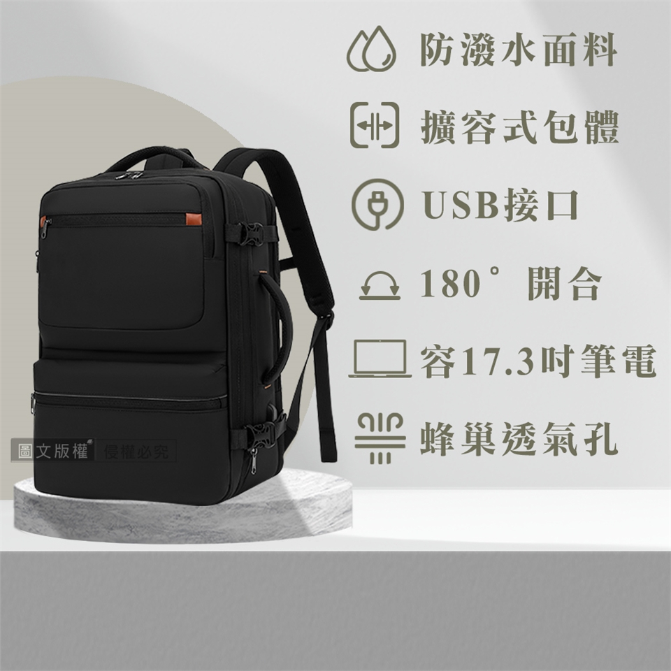 17.3吋 商務旅遊達人必備 多分層超大容量 180°全開合後背包