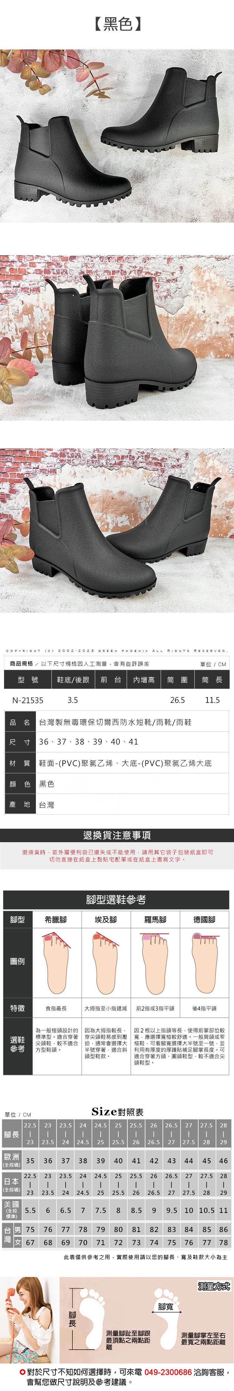 貼心提醒:此鞋款為正常版型,雨鞋若穿太貼合腳尺寸,遇水容易產生氣密現象,挑選時建議大一號,較舒適。