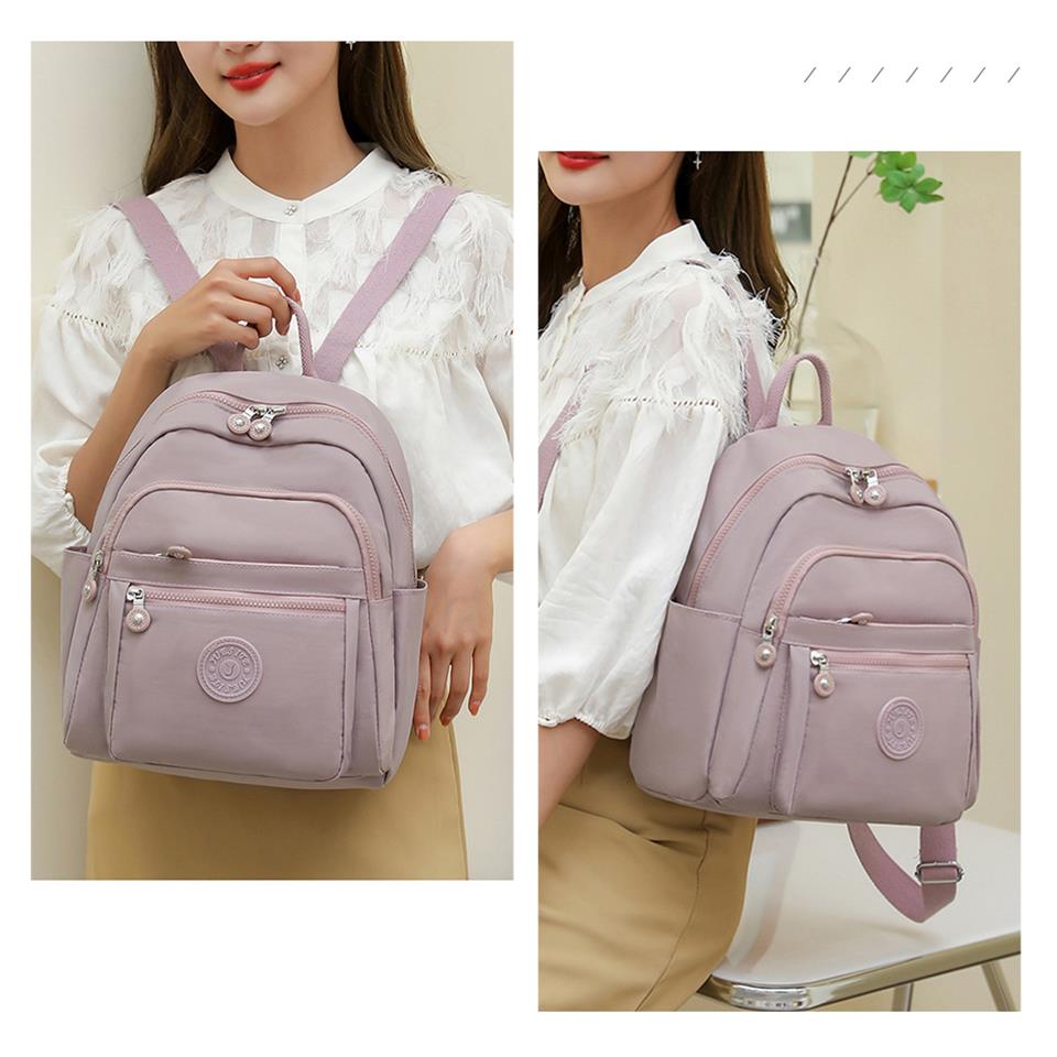 男女復古簡約風糖果色多夾層輕量尼龍斜背雙肩後背包