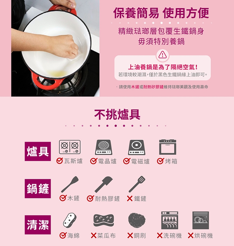 材質:鍋身、鍋蓋/鑄鐵+琺瑯層