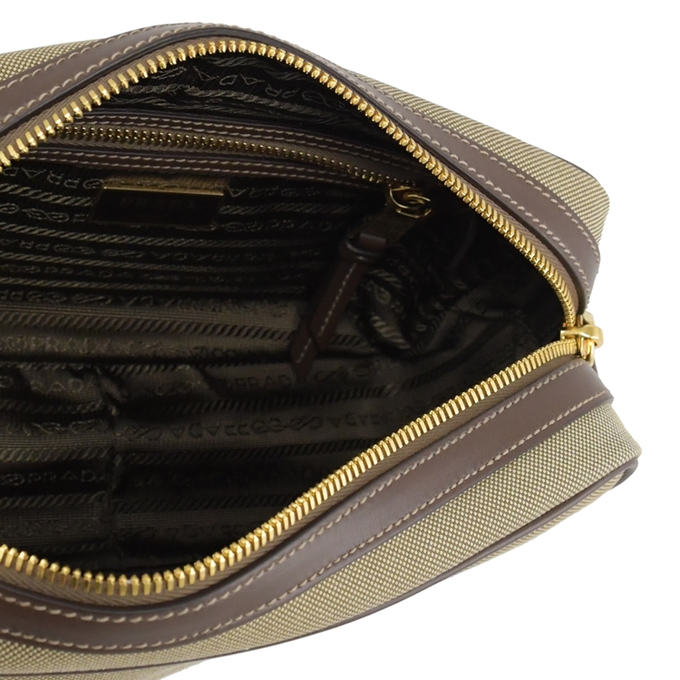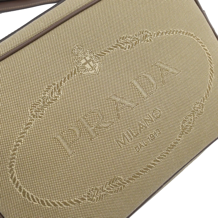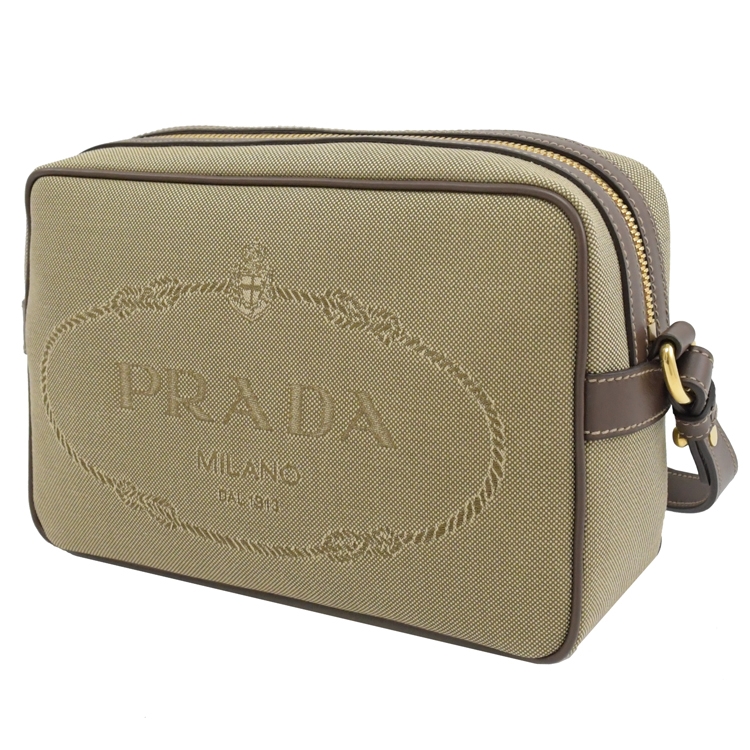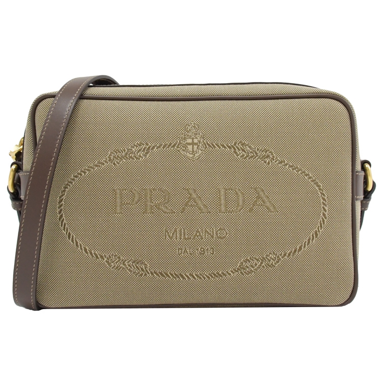 PRADA 品牌熱銷斜背相機包,品牌經典復古大LOGO,採用帆布皮革飾邊拼接,實用又耐看的中性斜背包,拉鍊開口/內有1拉鍊袋可收納,內可放長夾及手機、鑰匙等隨身小物,大小適中,外出出遊皆合適,釋放出都會女仕優雅的時尚風格,簡潔俐落的包包款。