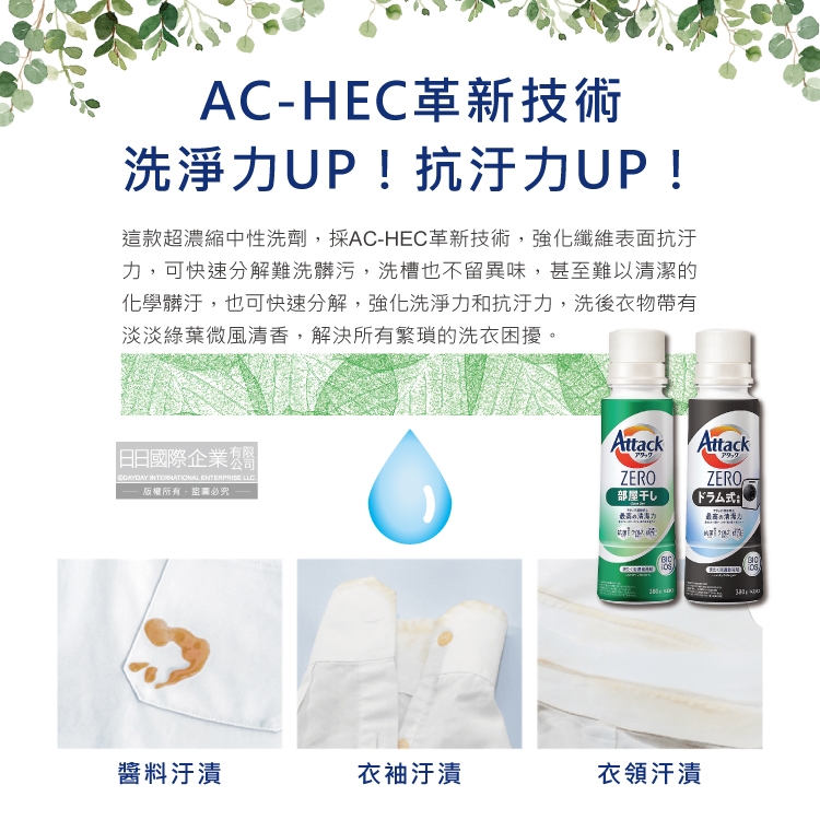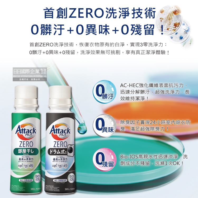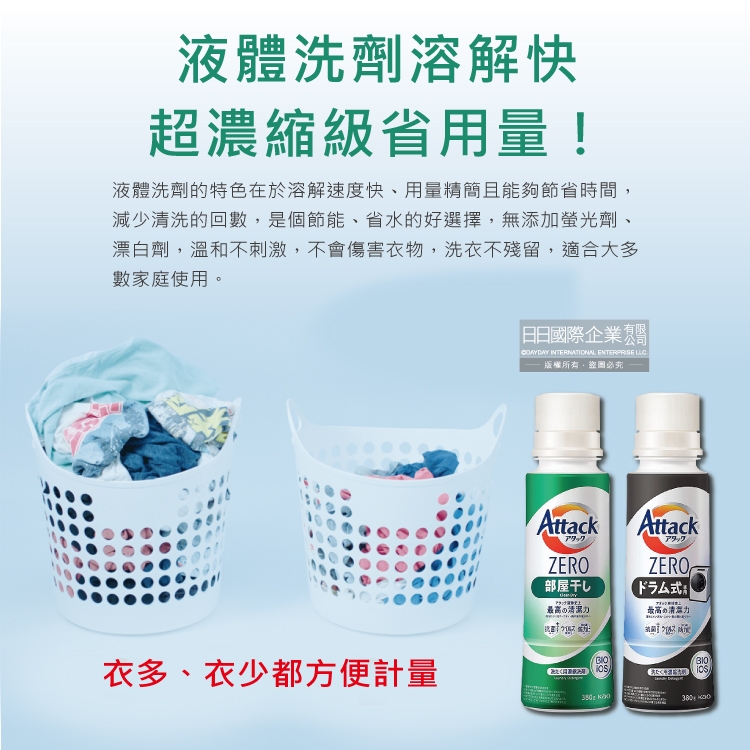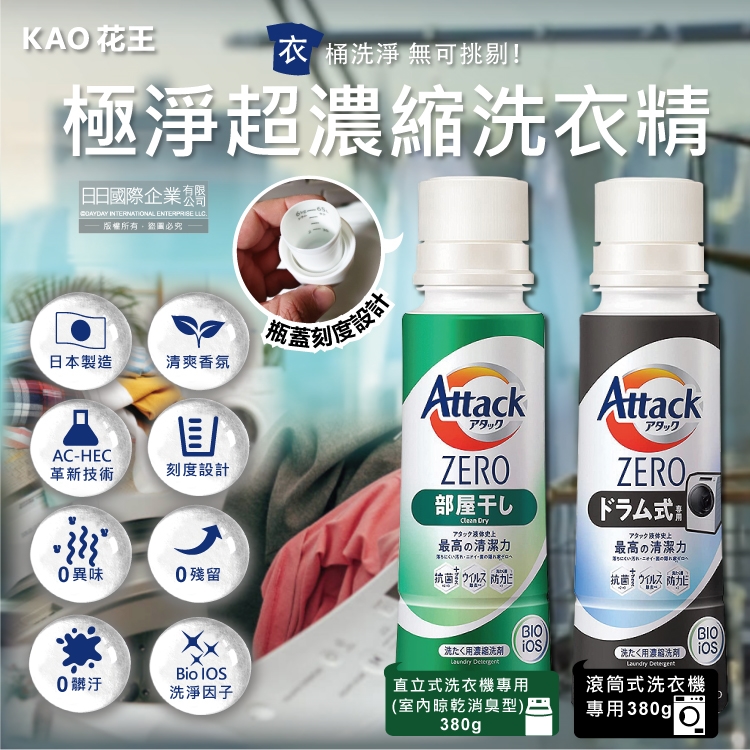 ●品名:Attack ZERO新極淨超濃縮瓶蓋型洗衣精