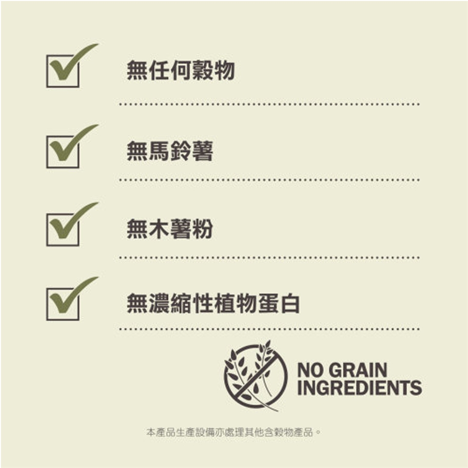 無任何穀物、木薯粉、馬鈴薯、濃縮性植物蛋白