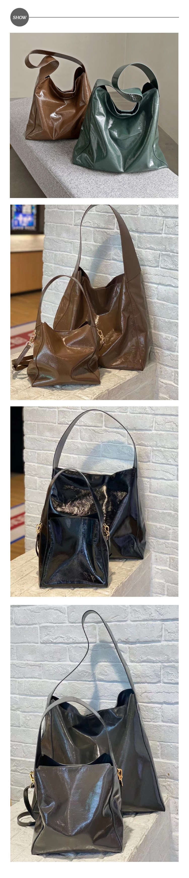 【felix】真皮頭層牛皮漆皮亮面大容量百搭水桶包 (4色任選)