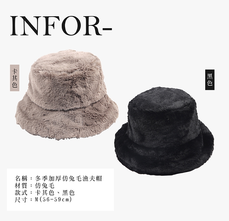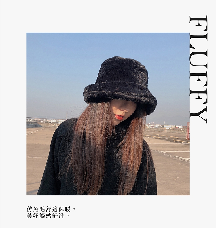 冬季時尚漁夫帽,採用仿兔毛設計材質