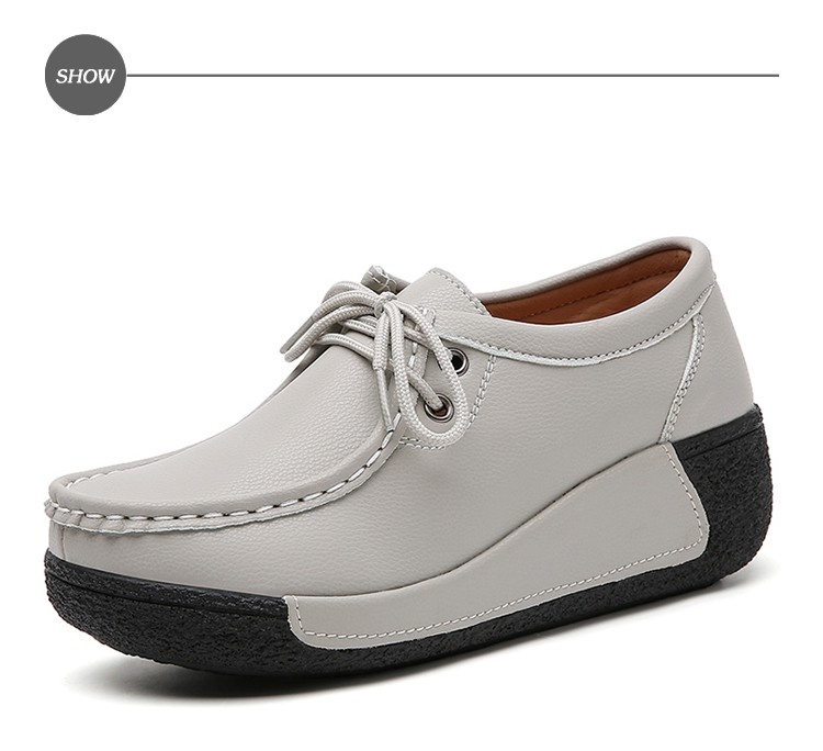 【MOM】休閒鞋 厚底休閒鞋/真皮個性縫線撞色拼接經典繫帶厚底休閒鞋 灰