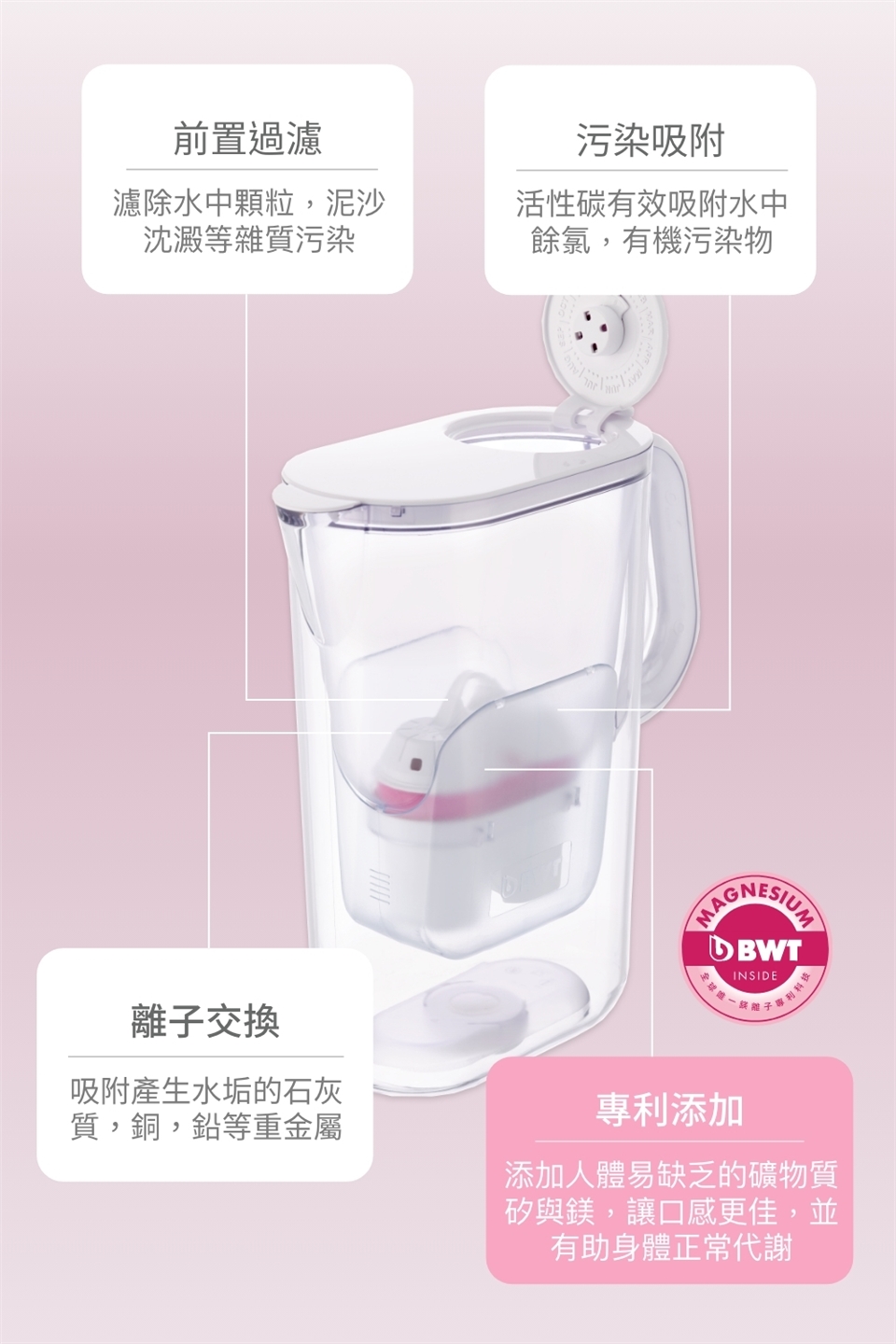 濾材成分: 抗菌活性碳、矽鎂離子交換樹脂