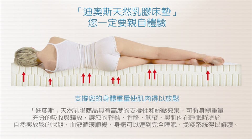 1. 乳膠床墊不可日曬,床墊建議每半年至一年正反面翻轉一次、頭尾對調一次,能使床墊各部受力平均,延長床墊壽命。