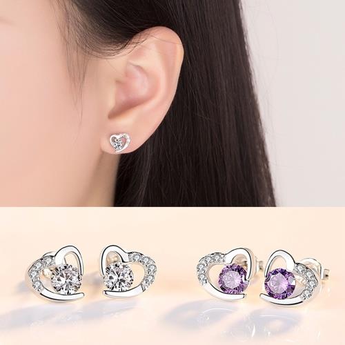 【Emi艾迷】愛戀時光愛心內鑲點鑽耳環
