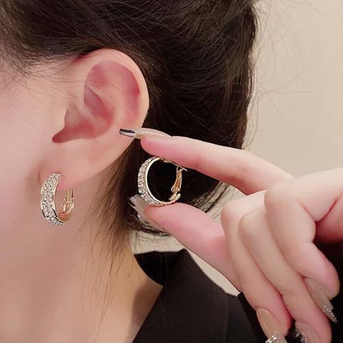 【Emi艾迷】流光璀璨奢華鑲鑽環繞925銀針耳環