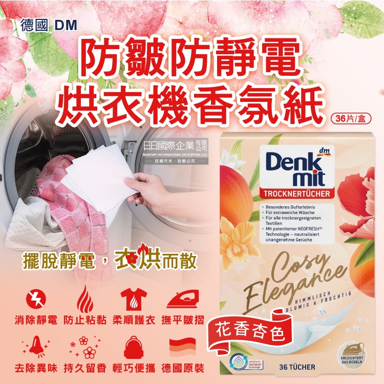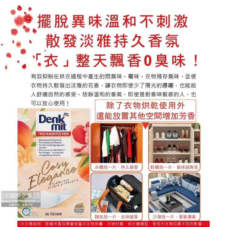 (7)本品為烘衣機專用去靜電香氛紙,並無洗滌功效,請勿與其它洗滌溶劑混合使用,以免衣物受損!