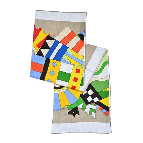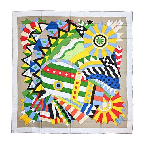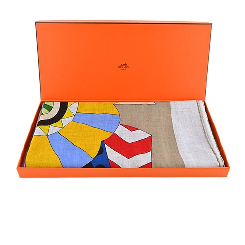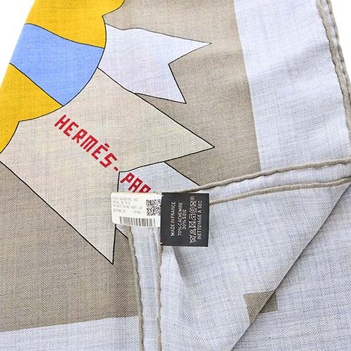 Hermes 愛馬仕 Cheval de Fete 140花飾緞帶喀什米爾與真絲混紡方巾(灰/藍/綠)