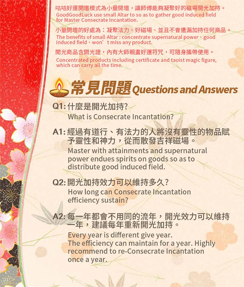 ◎ 咕咕好運商品,保證經大師開光加持,些許商品上會有點上硃砂印記,屬正常現象,可用清水擦拭摳除。