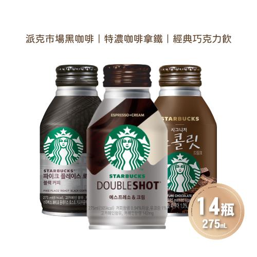 【STARBUCKS星巴克】派克市場黑咖啡/特濃咖啡拿鐵/經典巧克力飲任選14瓶(275ml/瓶)