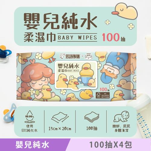 芳詩傳德 X Duga & Hook (厚款) 嬰兒純水柔濕巾/濕紙巾 (加蓋) 100抽 X 4包 使用 EDI 純化水 無紡布符合FSC森林認證