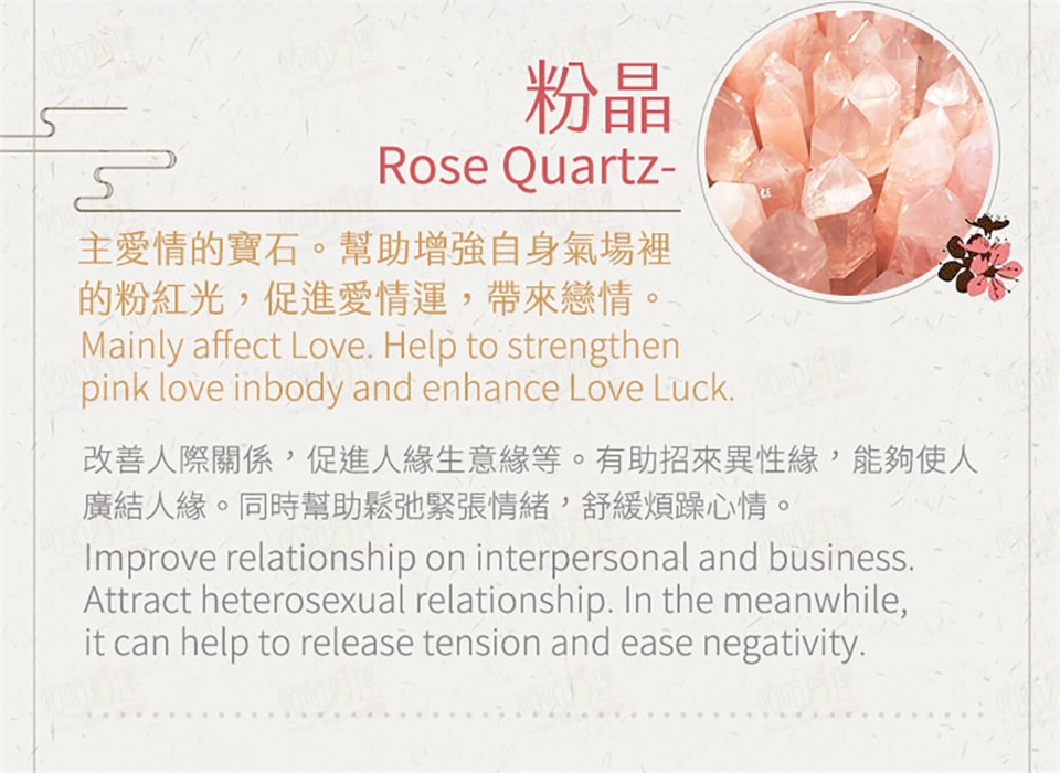 粉水晶則可以讓心輪緩緩展開,心情得以放鬆,重拾對愛的渴望,感動於生命的美好,因而感到幸福。 #好人緣手鍊