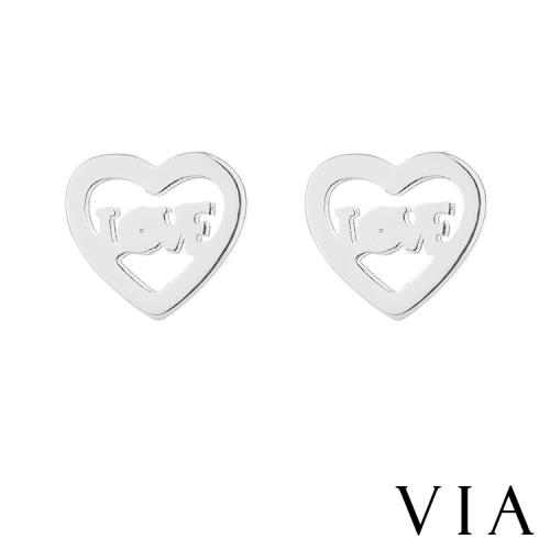 【VIA】符號系列 LOVE字母甜蜜愛心框框造型白鋼耳釘 造型耳釘 鋼色