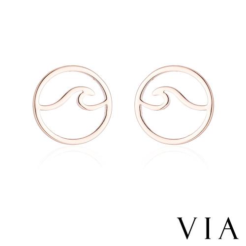 【VIA】符號系列 圓環海波浪造型白鋼耳釘 造型耳釘 玫瑰金色
