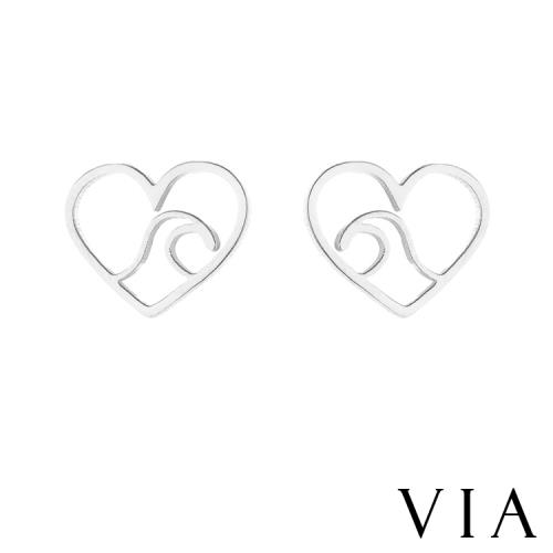 【VIA】符號系列 縷空愛心海波浪線條造型白鋼耳釘 造型耳釘 鋼色