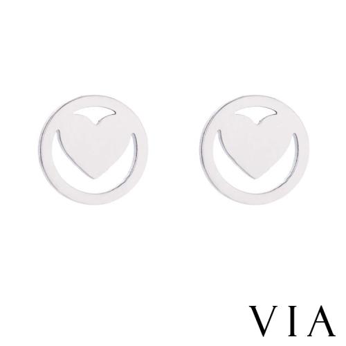 【VIA】符號系列 縷空圓環愛心造型白鋼耳釘 造型耳釘 鋼色