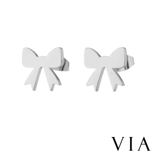 【VIA】時尚系列 甜美蝴蝶結造型白鋼耳釘 造型耳釘 鋼色