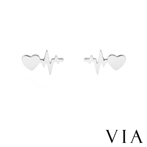【VIA】符號系列 愛心心跳電波造型白鋼耳釘 造型耳釘 鋼色