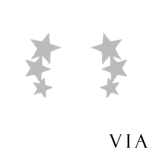 【VIA】星空系列 星星串飾造型白鋼耳釘 造型耳釘 鋼色