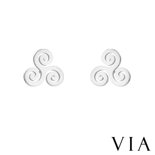 【VIA】符號系列 復古捲雲紋造型白鋼耳釘 造型耳釘 鋼色