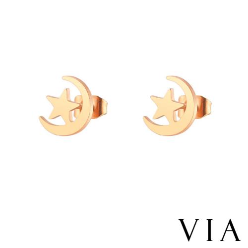 【VIA】星空系列 星月相伴星星月亮造型白鋼耳釘 造型耳釘 玫瑰金色