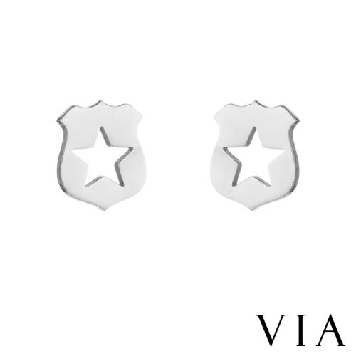 【VIA】個性系列 盾牌縷空星星造型白鋼耳釘 造型耳釘 鋼色