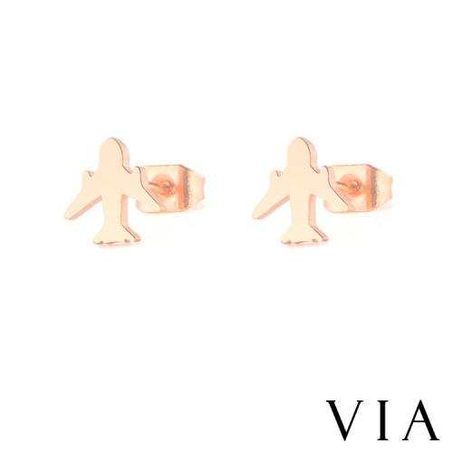 【VIA】個性系列 可愛飛機造型白鋼耳釘 造型耳釘 玫瑰金色