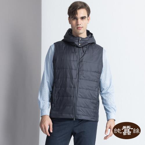 【岱妮蠶絲】可拆式連帽舖蠶絲立領背心外套-黑灰(UMK3YK02)