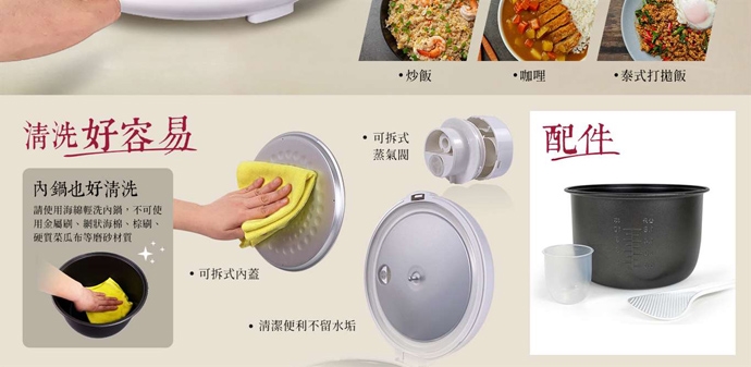 7.可拆式內蓋+蒸氣閥,清潔便利不易留水垢,內鍋不沾塗層處理同樣好清洗