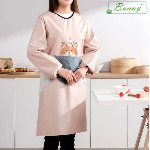 【Bunny】優質多功能長袖防護防水防油圍裙工作服(大口袋雙側擦手布款)