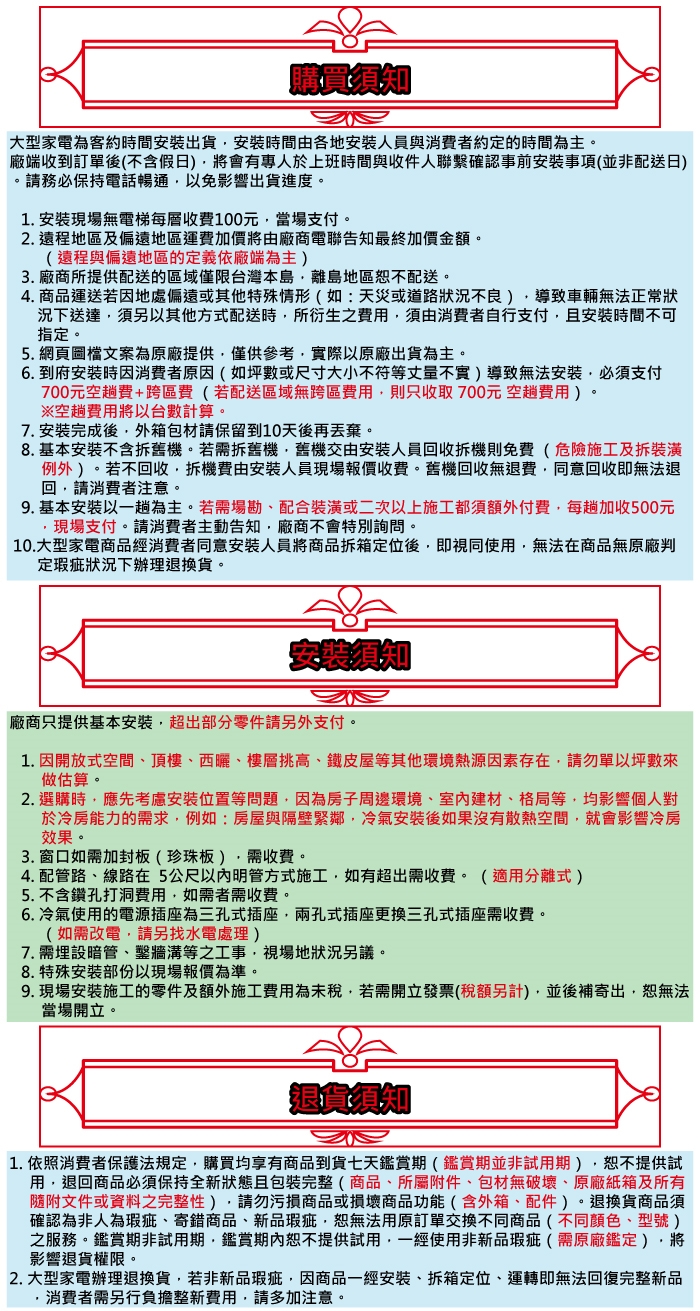 詳情請看購買須知、安裝須知、退貨須知說明圖。