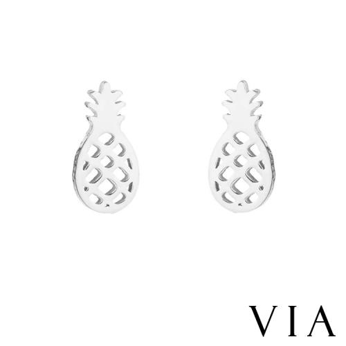 【VIA】植物系列 縷空小鳳梨造型白鋼耳釘 造型耳釘 鋼色