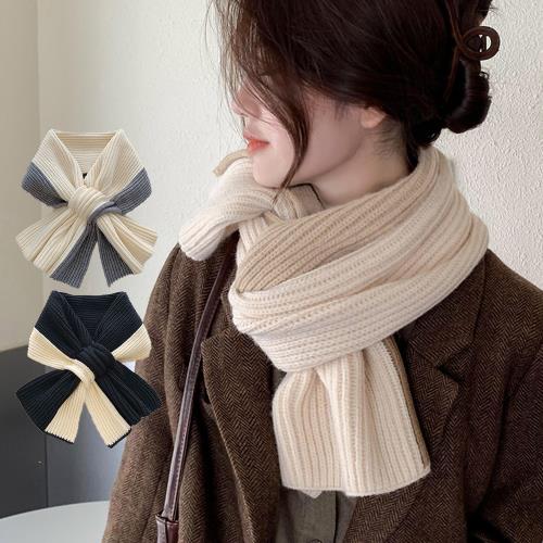 QIDINA 韓版慵懶風圍巾百搭針織保暖拼色小圍脖-A