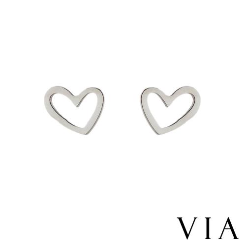 【VIA】符號系列 隨性愛心線條造型白鋼耳釘 造型耳釘 鋼色