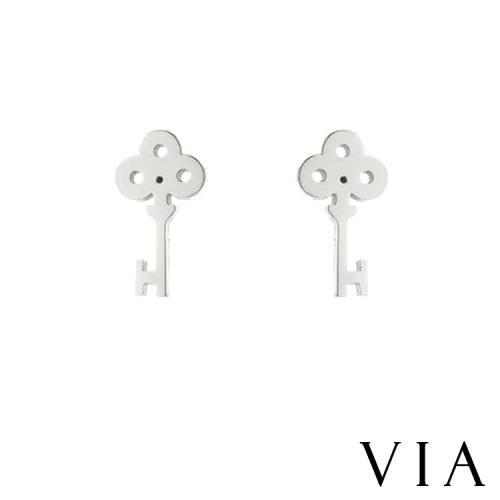 【VIA】時尚系列 秘密的鑰匙造型白鋼耳釘 造型耳釘 鋼色