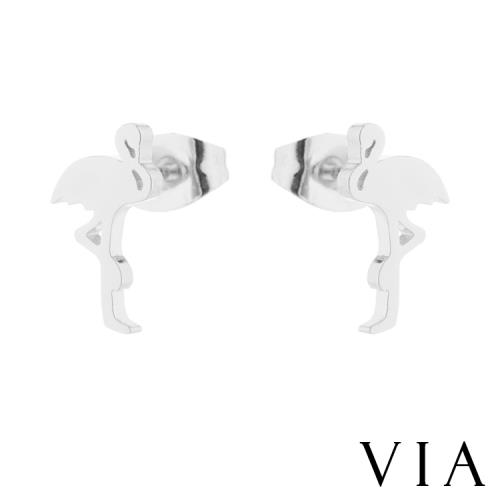 【VIA】動物系列 優雅火烈鳥造型白鋼耳釘 造型耳釘 鋼色