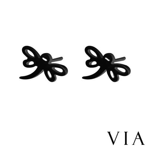 【VIA】昆蟲系列 飛舞小蜻蜓造型白鋼耳釘 造型耳釘 黑色