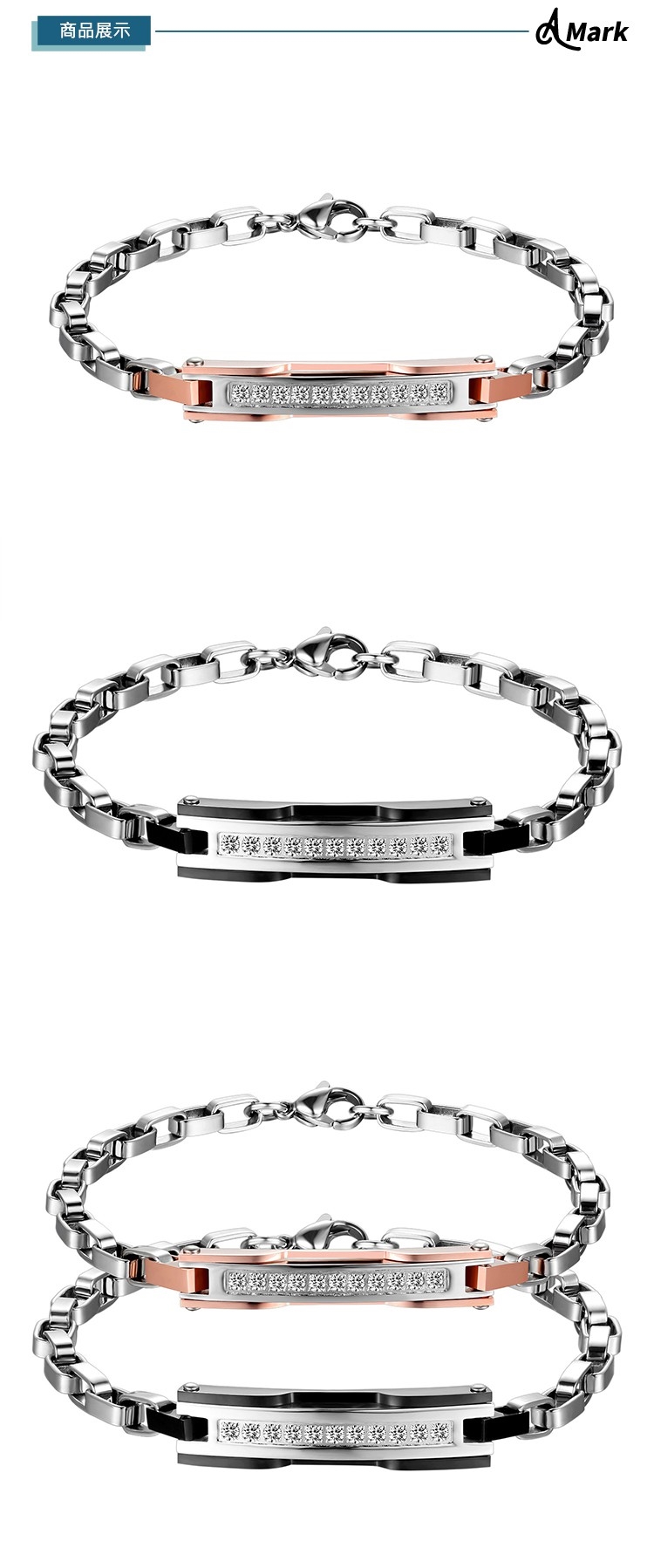 【A MARK】璀璨排鑽時尚設計316L鈦鋼手鍊 (2款任選)