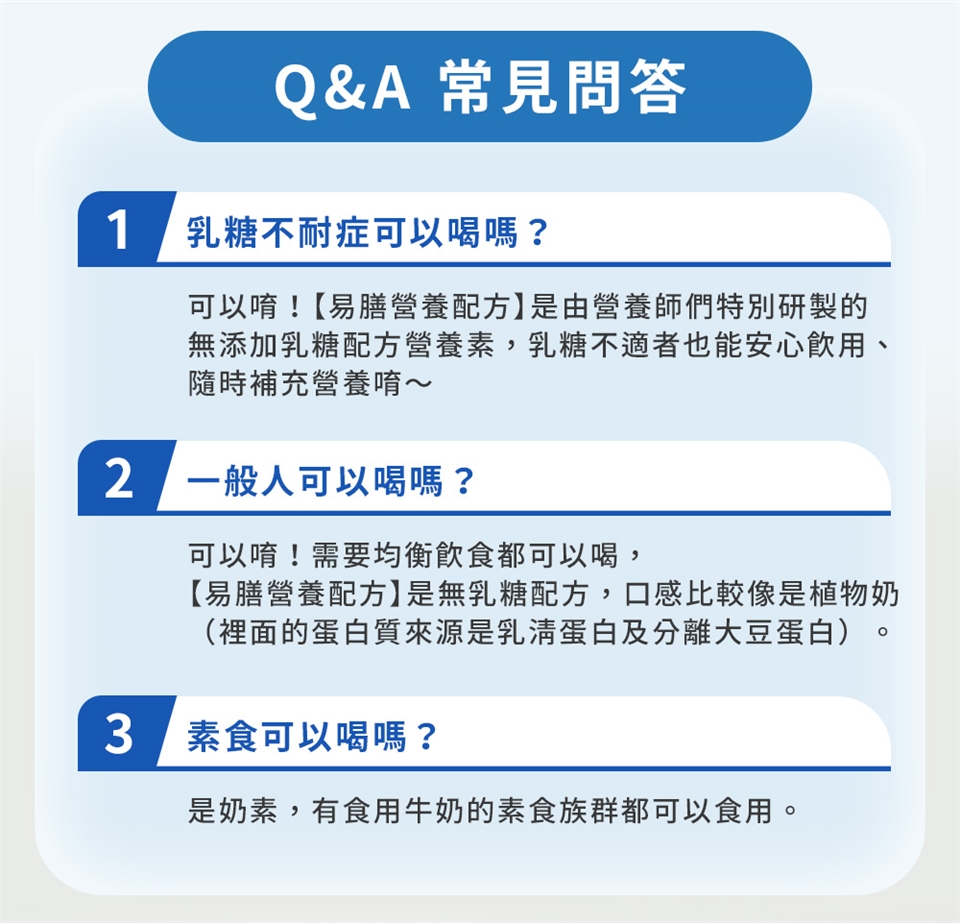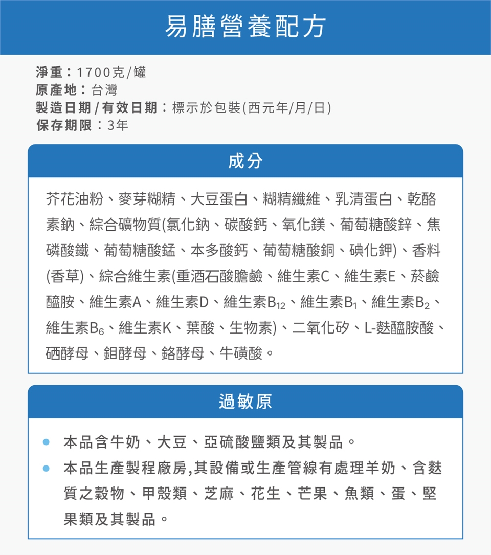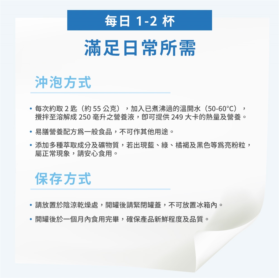 易膳營養配方為一般食品,不可作其他用途。