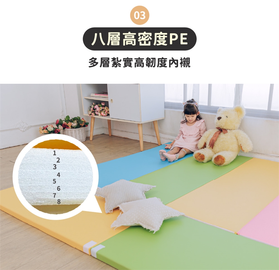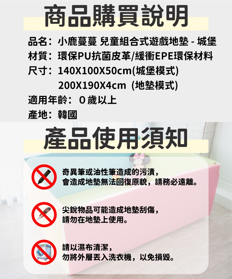2.地墊設置各種立體型態時,務必保持孩童可自由進出之型態,並請照護者注意孩童安全