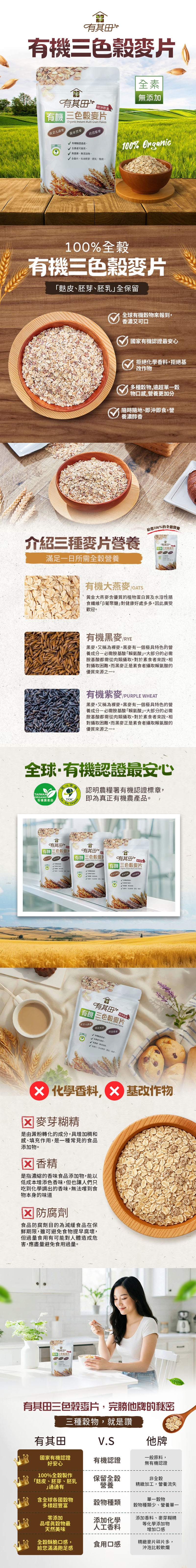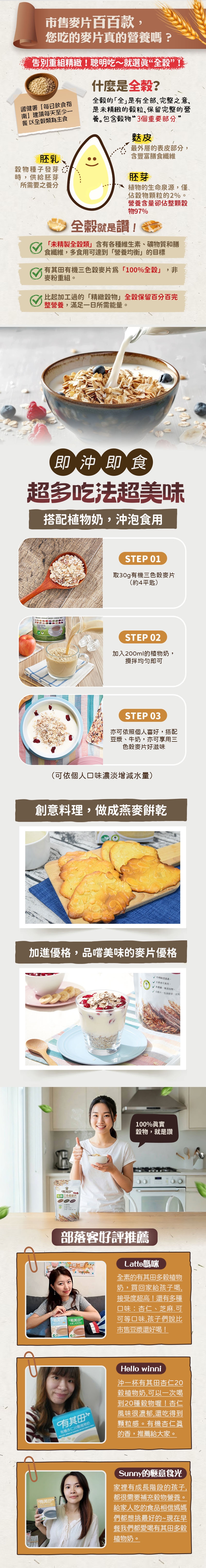 (1) 將30-50克有其田有機麥片加入250ml的有其田有機多穀奶,均勻攪拌即可。