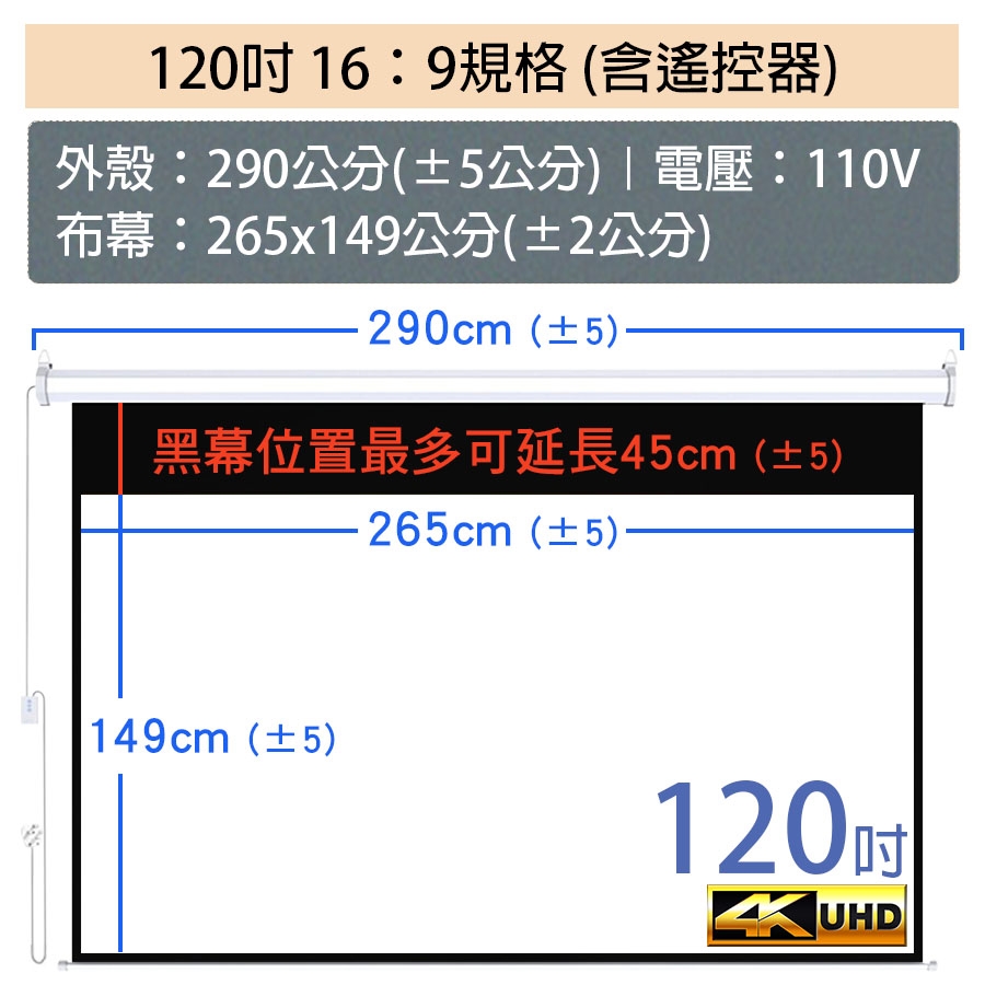 商品尺寸|120吋-16:9(含遙控器)