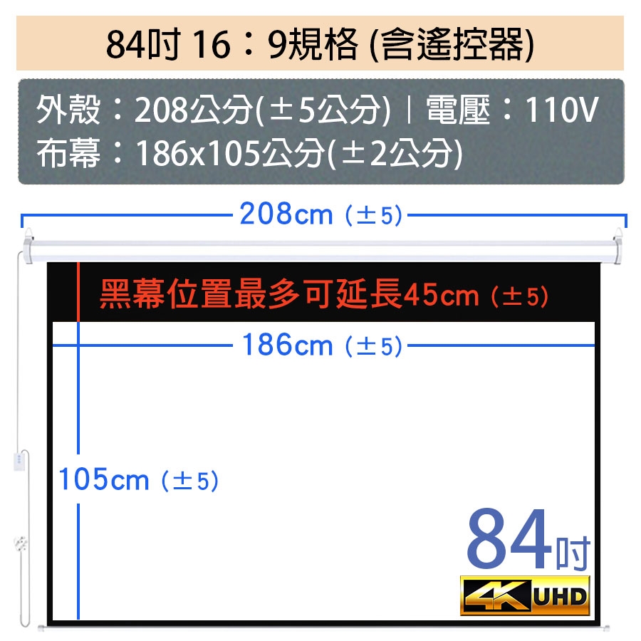 商品尺寸|100吋-16:9(含遙控器)