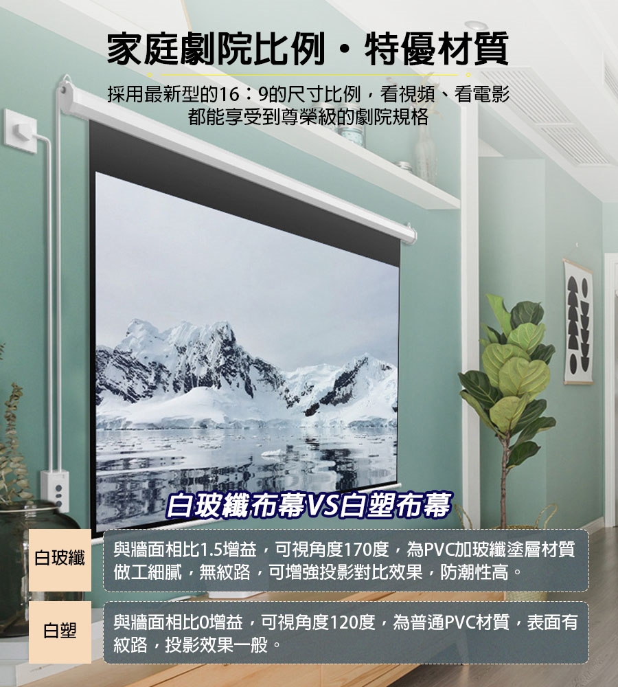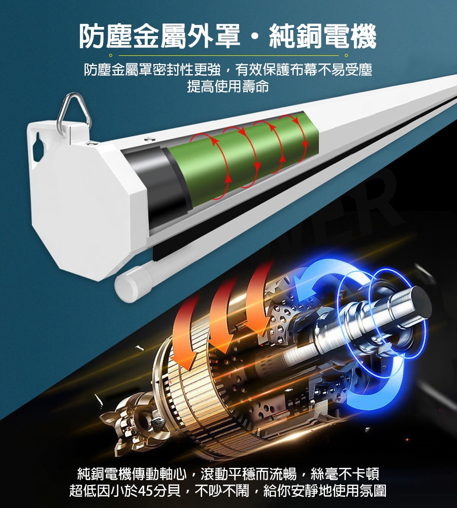 ◆採用金屬防塵外罩,有效保護布幕,長久使用不損壞