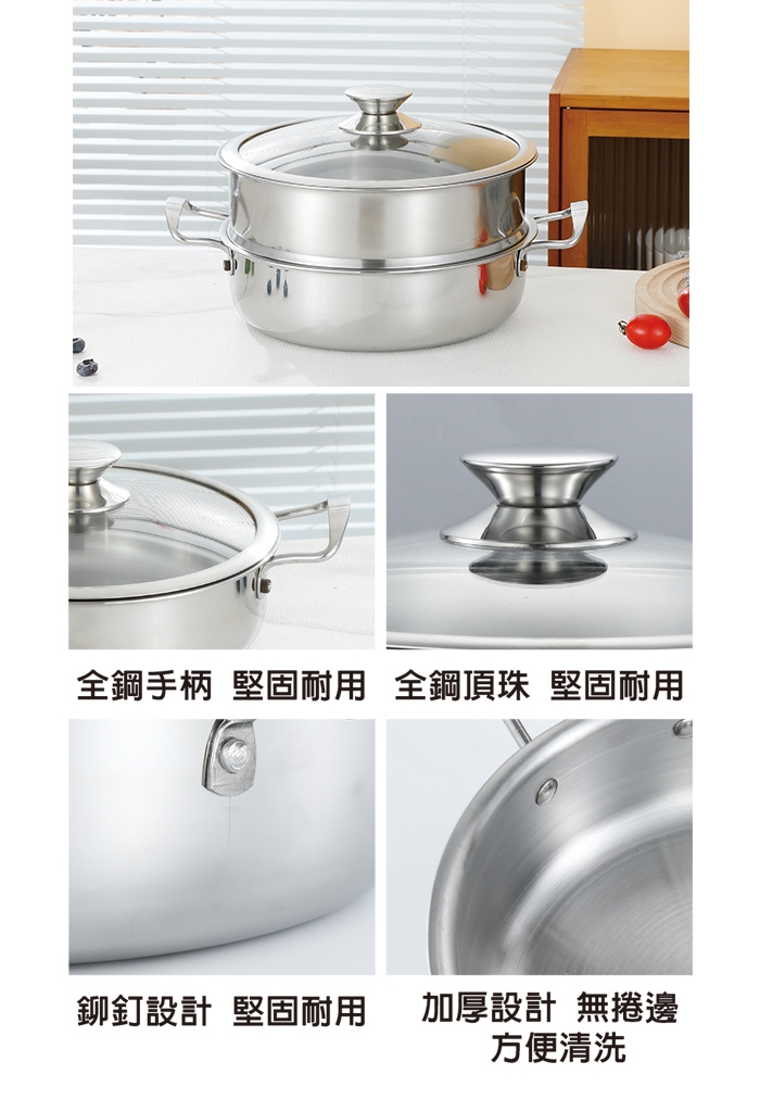鵝頭牌不鏽鋼雙耳蒸鍋26cm
